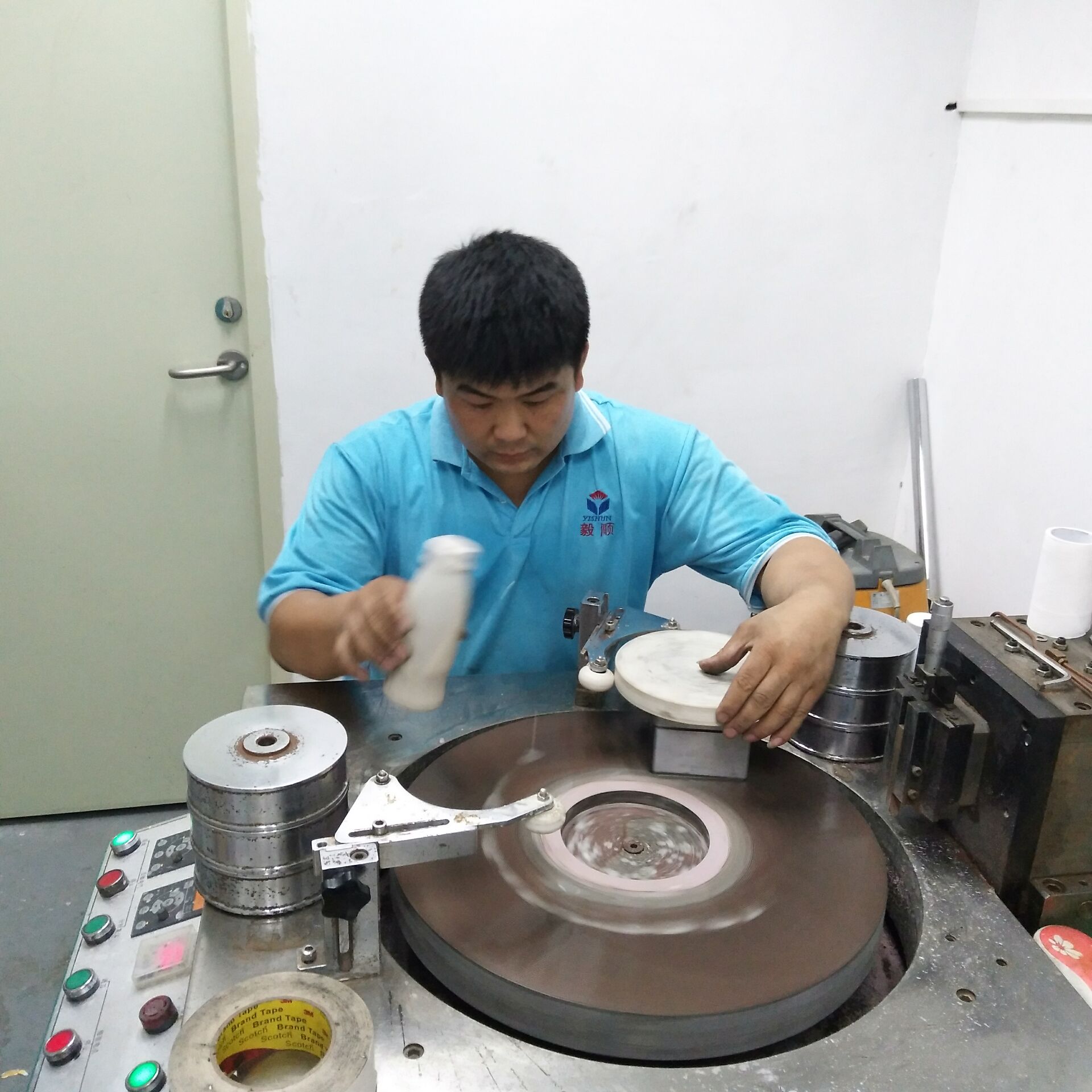 3、操作磨光設(shè)備,進行表面處理作業(yè)。