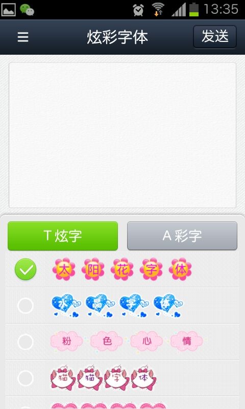 4、選擇您喜歡的炫彩字樣式,并發(fā)送。